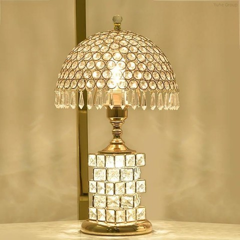 Lámpara de mesa de estilo europeo, lámpara de mesa de cristal, lámpara de noche, luz de dormitorio principal lámpara de mesa decorativa de lujo
