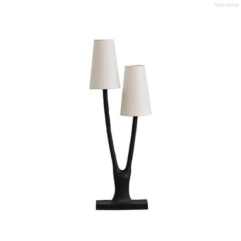 Lámpara de escritorio de doble rama con arte de hierro de estilo antiguo Wabi Sabi, hogar vintage, sala de estar, accesorios de iluminación para dormitorio